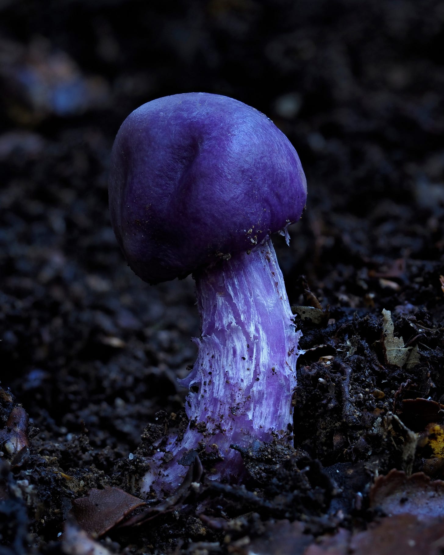 A few days later, I revisited the spot to show my friend Kim, a fellow mycophile who came all the way down from Motueka. This time, the smaller Mauve Splitting Waxcap had been covered in a mycoparasite (unsure if Spinellus sp.). This made me wonder if my touching of the cap before had anything to do with it.