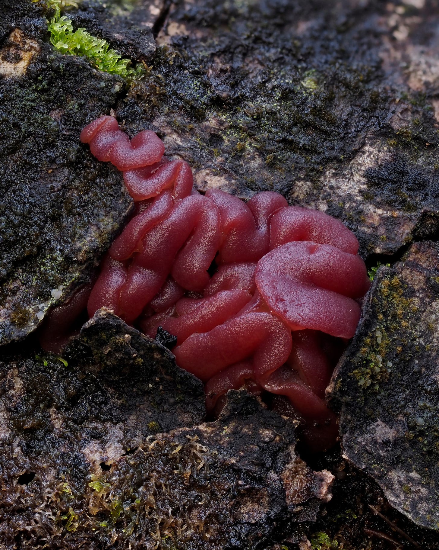 Keeping with the jelly theme, plenty of dark purple/maroon Ascocoryne sp. were found growing from rotting logs.